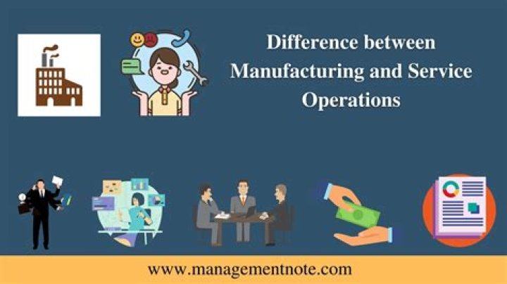 There are five main differences between service and manufacturing organizations: the tangibility of their output; production on demand or for inventory; customer-specific production; labor-intensive or automated operations; and the need for a physical production location.