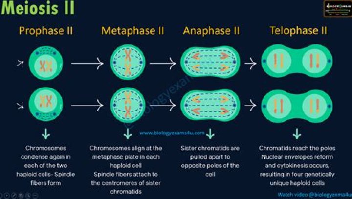 During prophase II, the chromosomes condense, and a new set of spindle fibers forms. The chromosomes begin moving toward the equator of the cell. During metaphase II, the centromeres of the paired chromatids align along the equatorial plate in both cells.