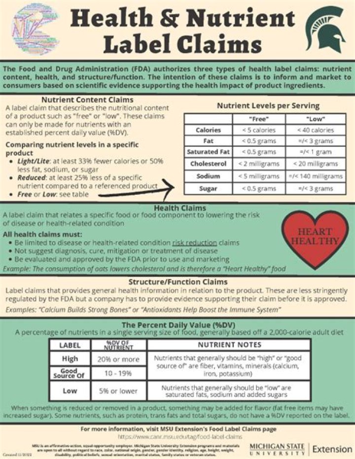 - FDA-approved health claims or qualified health claims.
