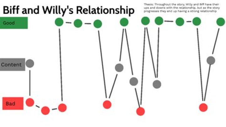 Willy and Biff are father and son who have an irreparable relationship. According to the author, Biff represents a failure in that his father does not think he has a credible job, his father feels he is trying to spite him, and his father is disappointed in his bad grades.