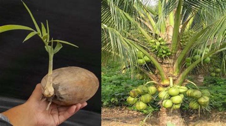 To start to grow a coconut plant, begin with a fresh coconut that still has the husk on it. … After the coconut has soaked, place it in a container filled with well-draining potting soil. It is best to mix in a little sand or vermiculite to make sure the soil you will be growing coconut trees in drains well.