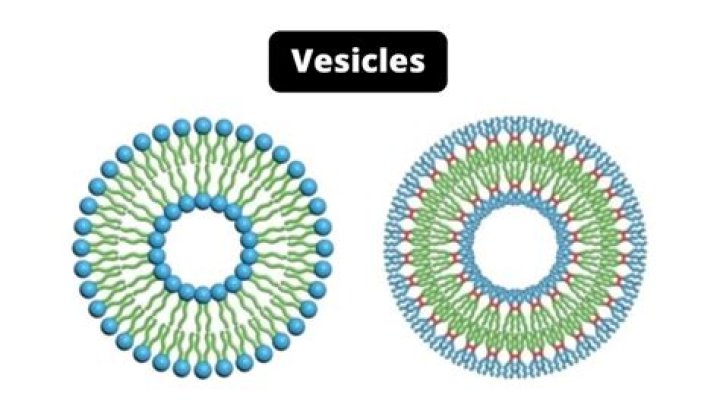 A vesicle is a self-contained structure consisting of fluid or gas surrounded and enclosed by an outer membrane called the lipid bilayer. This is made up of hydrophilic heads and hydrophobic tails that cluster together.