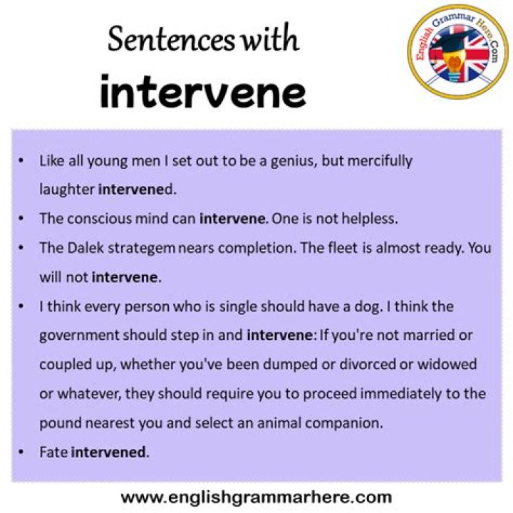 1 : to come or occur between events, places, or points of time One week intervened between games. 2 : to interfere with something so as to stop, settle, or change I intervened in their quarrel. intervene. intransitive verb. in·ter·vene | \ ˌin-tər-ˈvēn \What is intervene with example?