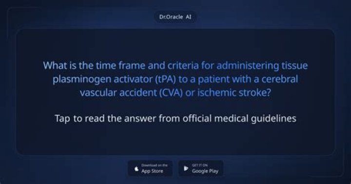 this patient with intravenous tissue-type plasminogen activator (IV tPA) assuming the treatment could be initiated within 4.5 hours from stroke onset. In fact, the American Heart Association and European Stroke Organization guide- lines both recommend treatment of selected patients in the 3- to 4.5-hour time window.