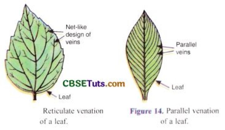 The arrangement of veins and veinlets on the lamina of a leaf is called venation. There are two types of venation, reticulate and parallel venation.