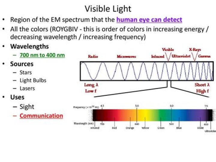 - Red: 620–750 nm (400–484 THz frequency)