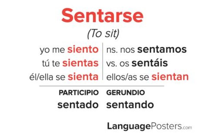 Subject PronounSentarse Conjugationyome sientotúte sientasél/ella ustedse sientanosotros nosotrasnos sentamos