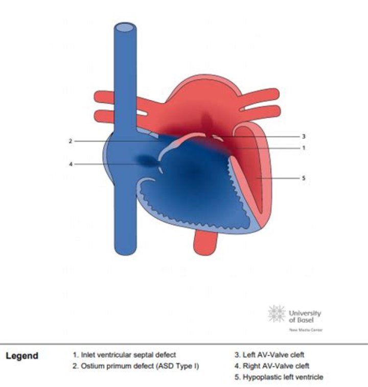 Atrioventricular septal defect (AVSD), also referred to as endocardial cushion defects, consists of three defects in the heart: An atrial septal defect (ASD), a hole in the “wall” (septum) of the heart that separates the two upper chambers (the atria).