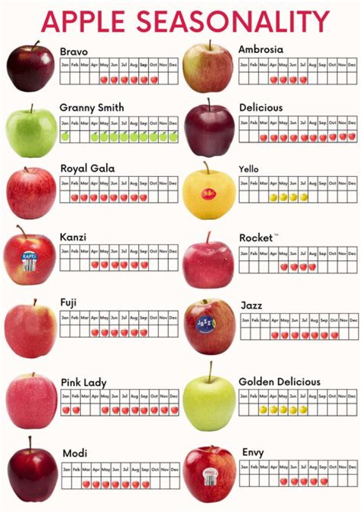 They’re such a diet staple that the average American eats about 20 pounds of apples each year. Depending on the variety, apples are available from late July through early November.