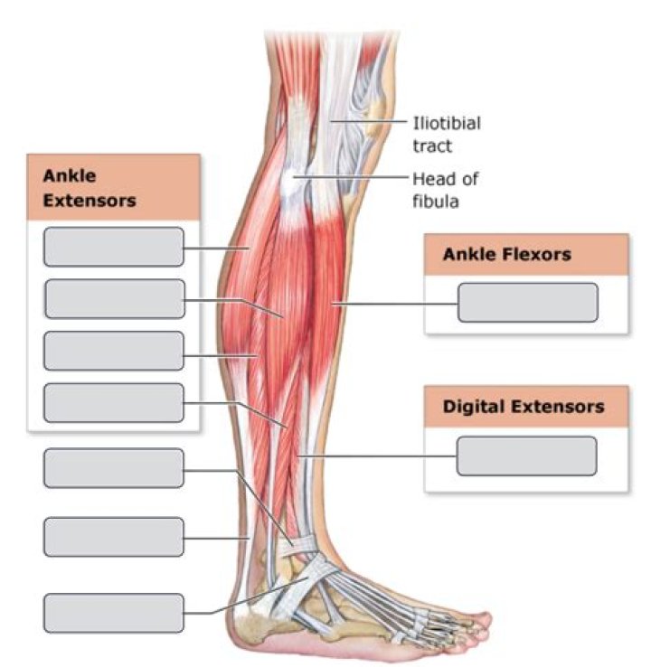 The tibialis anterior muscle, found in the anterior compartment of the leg, is the primary muscle that facilitates dorsiflexion of the ankle joint. The peroneus longus and Peroneus Brevis muscles, found in the lateral compartment of the leg, function to facilitate eversion of the ankle joint.