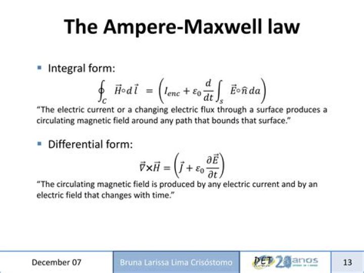 Find the Maxwell law derived from Ampere law. Explanation: From the current density definition and Ohm’s law, the Ampere circuital law Curl(H) = J can be derived. This is Maxwell’s second law of electromagnetics.What is Ampere's circuital law explain Ampere-Maxwell modified law and explain displacement current with its help?