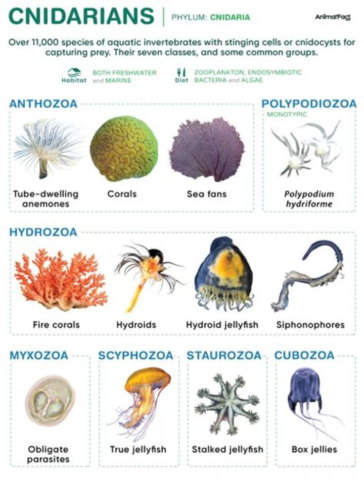 - Common Name(s): Coelenterates, corals, jellyfish, sea anemones, sea pens, hydrozoans.