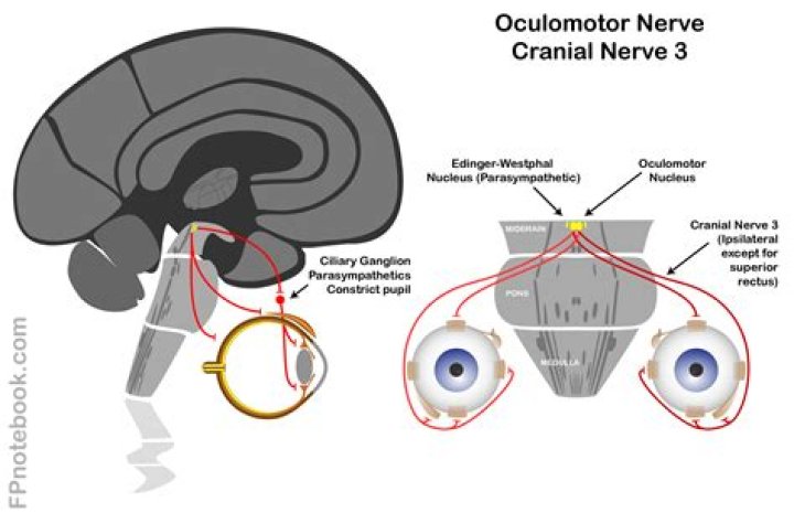 The oculomotor nerve is the third cranial nerve (CN III). It allows movement of the eye muscles, constriction of the pupil, focusing the eyes and the position of the upper eyelid. Cranial nerve III works with other cranial nerves to control eye movements and support sensory functioning.