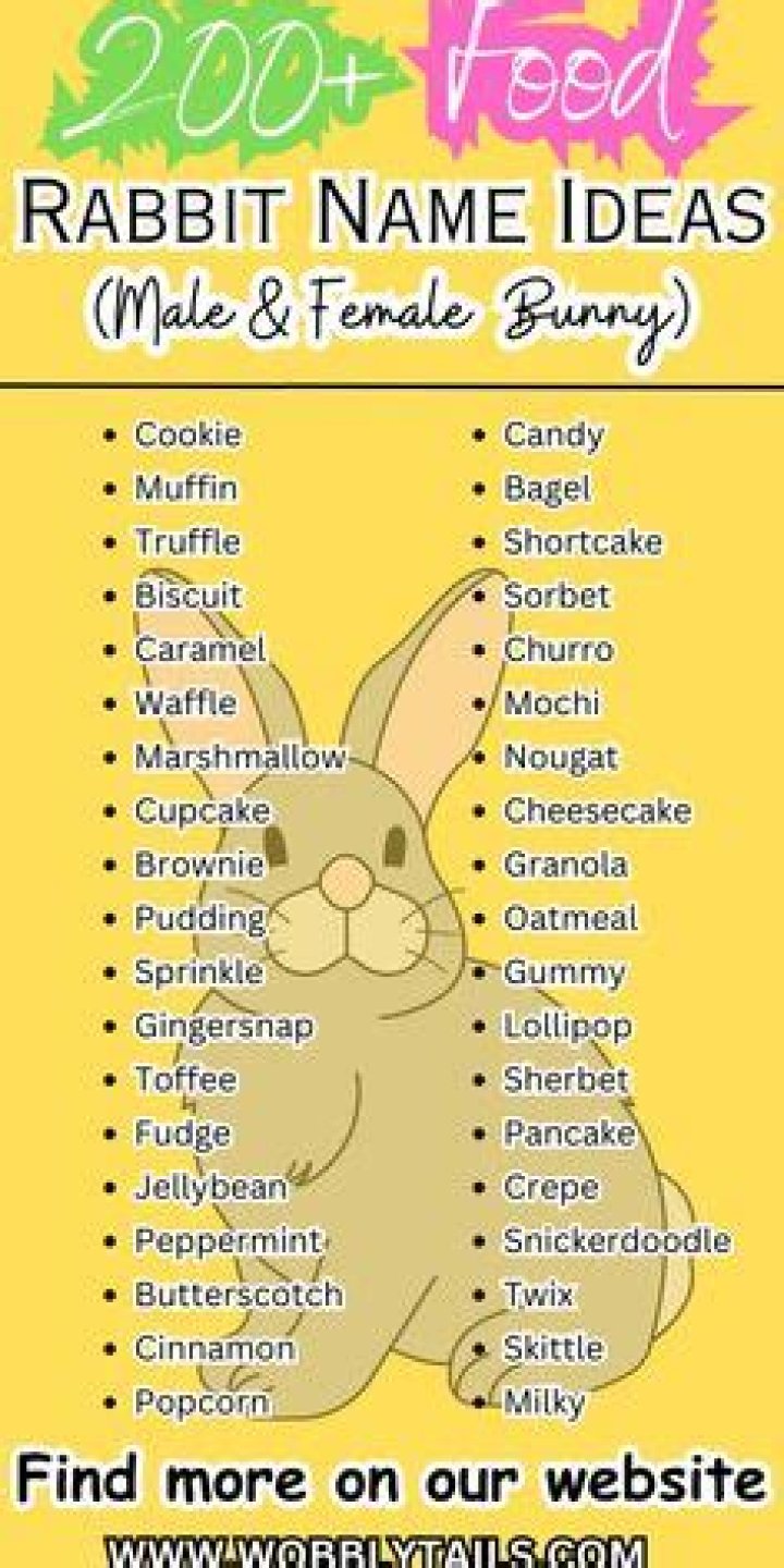 - Jelly Bean. This is a cute name that befits an adorable, cuddly rabbit.