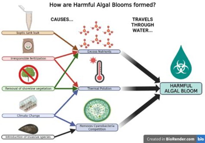 What might cause a harmful algal bloom?