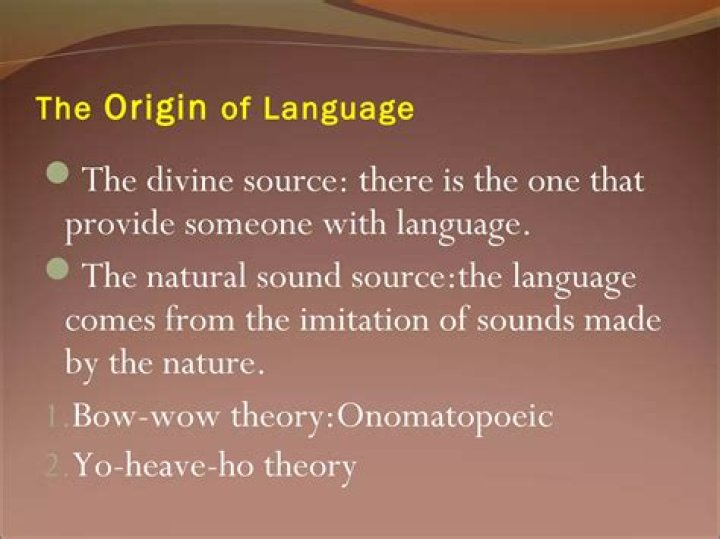 The Bow-Wow Theory According to this theory, language began when our ancestors started imitating the natural sounds around them. The first speech was onomatopoeic—marked by echoic words such as moo, meow, splash, cuckoo, and bang.