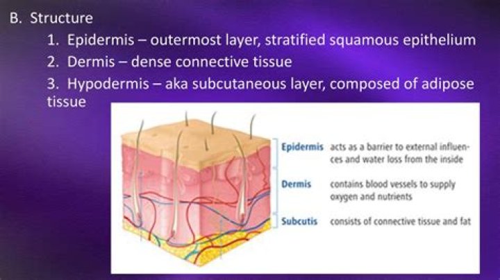 The skin is composed of three layers of tissue: the outer epidermis (made of stratified squamous epithelium ), the middle dermis (made of fibrous connective tissue ), and the inner subcutaneous layer connective tissue ), and the inner subcutaneous layer or hypodermis (made of adipose tissue and loose connective tissue) …
