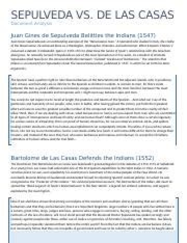 Bartolomé de Las Casas debates the subjugation of the Indians, 1550. … Sepulveda argued against Las Casas on behalf of the colonists’ property rights. Sepulveda rationalized Spanish treatment of American Indians by arguing that Indians were “natural slaves” and that Spanish presence in the New World would benefit them.