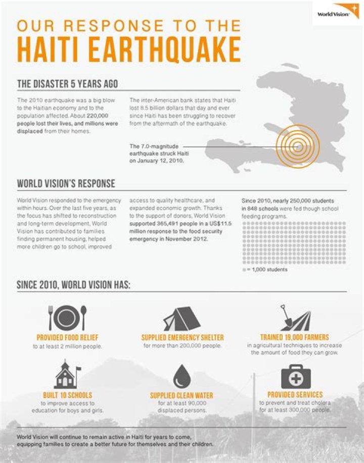 In the aftermath of the January 2010 earthquake in Haiti, USAID has provided relief, recovery and long-term reconstruction assistance: … Emergency Food Assistance: Provided emergency food relief for nearly four million people in the first three months after the earthquake, the largest emergency food distribution ever.