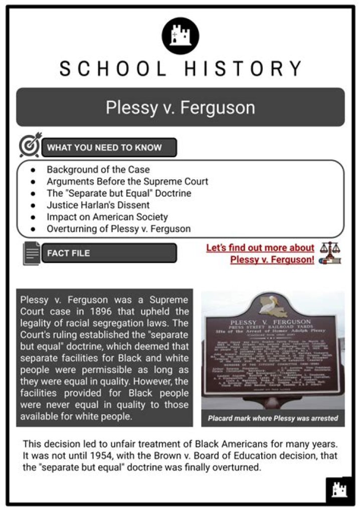 Plessy v. Ferguson was a landmark 1896 U.S. Supreme Court decision that upheld the constitutionality of racial segregation under the “separate but equal” doctrine. … As a result, restrictive Jim Crow legislation and separate public accommodations based on race became commonplace.