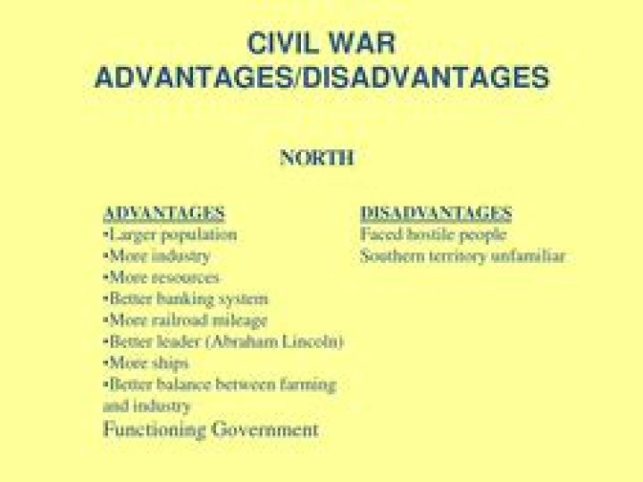The North had a better economic than the South, so the North had more troops to fight the war. The North had railroads, steamboats, roads, and canals for faster transport of supplies and troops. You just studied 10 terms! The Union had the better advantage against the South, but the South had a few advantages.