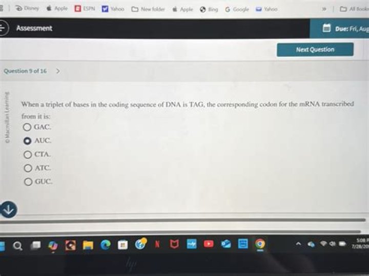When a triplet of bases in the coding sequence of DNA is tag the corresponding codon for the mRNA?
