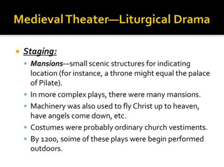 The earliest form of drama to be termed “liturgical” was the musical dialogue sung in the services of monastic churches of the Middle Ages. 10 Called a “trope,” these dialogues were elaborations on the Scripture readings appropriate to a particular day in the church year.