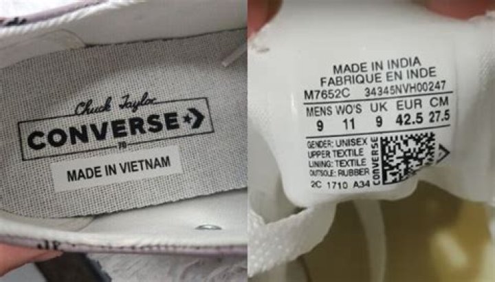 1. Authentic Converse shoes are manufactured in any of these four countries – Vietnam, China, India and Indonesia. … In a given pair, both shoes (your left and right shoe) should have a DIFFERENT code on the label that is stitched on the inner side of the shoe tongue.