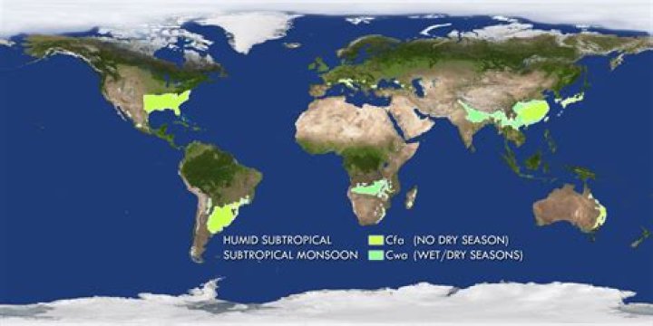 Which area is part of a humid subtropical climate zone?