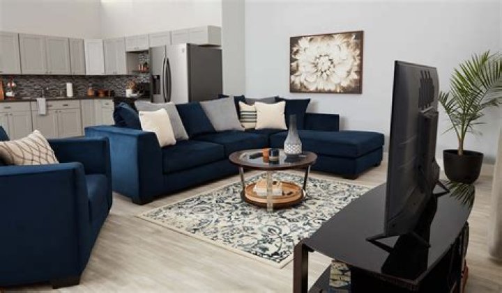 Typical living room rug sizes are 8’x10′ and 9’x12′. Make sure your rug is at least 6″ wider (8″ is ideal) than your sofa on both sides. Typically run the rug the length of the sofa. Give 30″ to 36″ of a walkway between large furniture pieces (if your living room allows for it) if not then at least 18″-24″.
