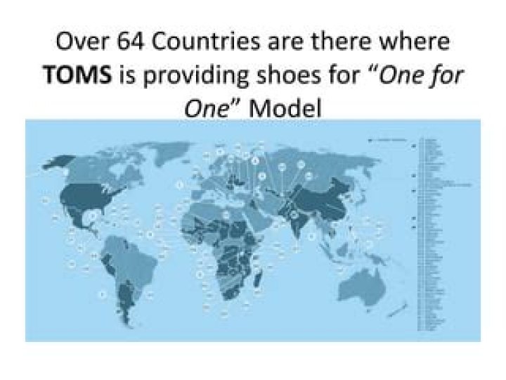 TOMS was founded with a corporate social responsibility program that is inseparable from its mission. … Today, TOMS gives shoes in more than 50 countries and works with charitable partners who incorporate shoes into their health, education, hygiene and community development programs.