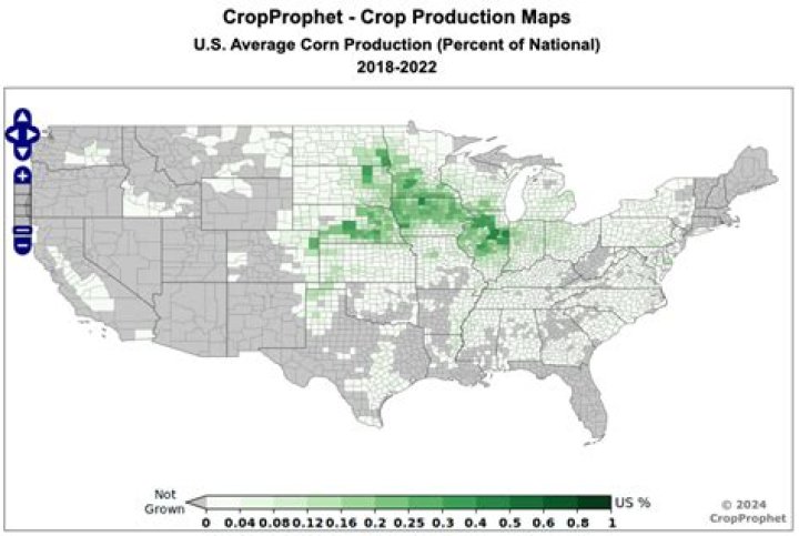 Corn is grown in most U.S. States, but production is concentrated in the Heartland region (including Illinois, Iowa, Indiana, eastern portions of South Dakota and Nebraska, western Kentucky and Ohio, and the northern two-thirds of Missouri).