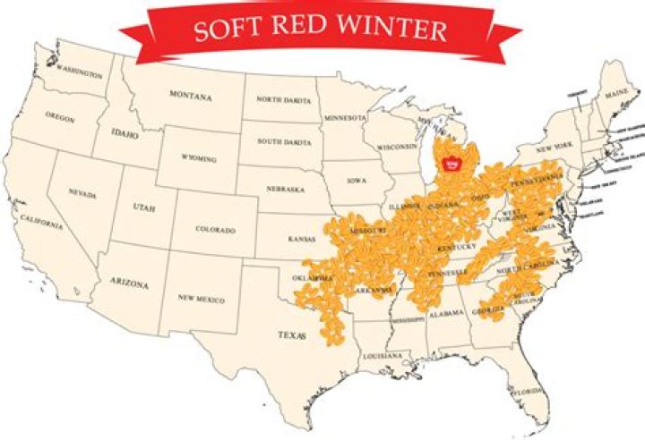 Soft red winter (SRW) wheat with an average production of 20% raised in the states of Ohio, Kentucky, Indiana, Washington, Oregon, Idaho, Michigan, New York, and the Southeast, the flour from this wheat is used in making cakes, cookies, and crackers.