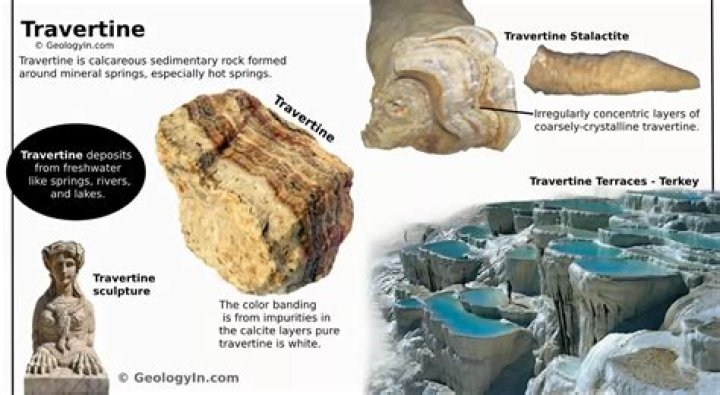 Travertine is a type of limestone that is formed by mineral deposits from natural springs. This sedimentary stone is created by a rapid precipitation of calcium carbonate, known as calcite.
