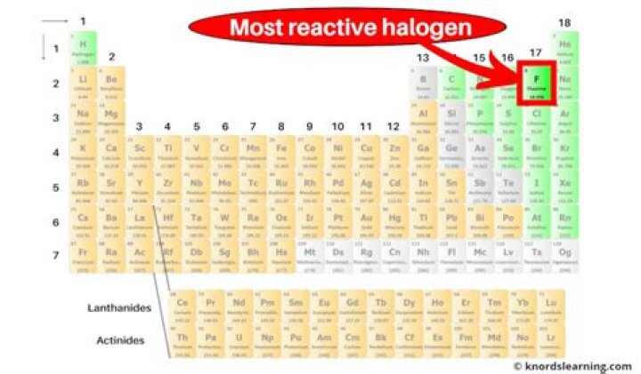 Hello and thanks for the question regarding the reactivity of the halogens. As you go down the group (fluorine down through astatine), the reactivity lessens. Fluorine is the most active halogen and iodine is the least reactive halogen. Astatine is rare and normally not used in any reactions that we write or use.