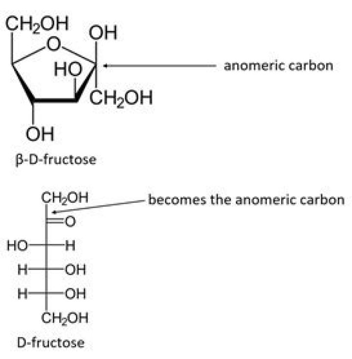 When fructose adopts a Furanose structure which carbon is the anomeric carbon?The C-1 carbon is called the “anomeric” carbon and the α and β diastereoisomers are referred to as “anomers”.