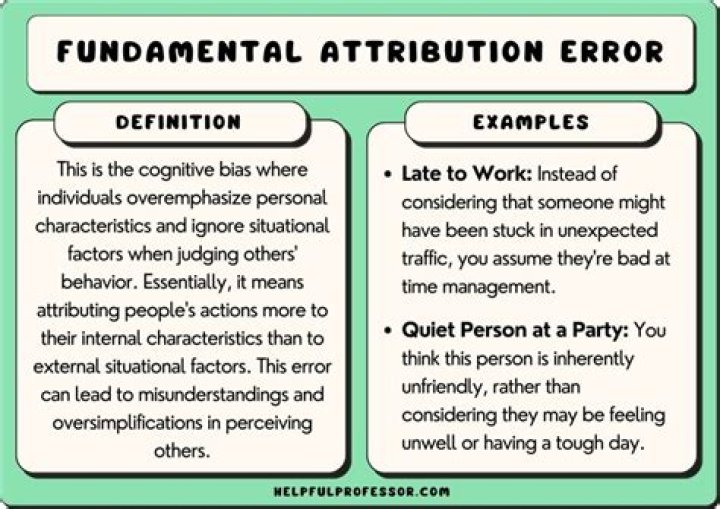 The fundamental attribution error is the tendency people have to overemphasize personal characteristics and ignore situational factors in judging others’ behavior. … For example, in one study when something bad happened to someone else, subjects blamed that person’s behavior or personality 65% of the time.