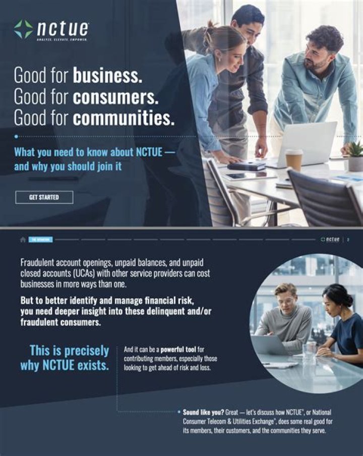 Consumers. National Consumer Telecom & Utilities Exchange (NCTUE) is a credit reporting agency that maintains data, such as payment and account history, reported by member service providers in the telecommunications, pay TV, and utility industries.