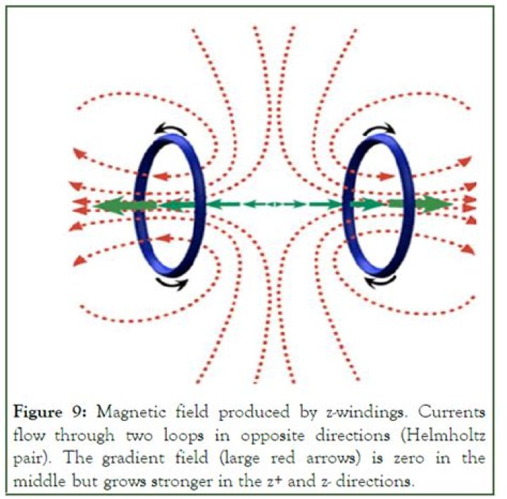 By passing current through gradients created by coils of wire (gradient coils), the magnetic field strength is altered in a controlled and predictable way. Gradients add or subtract from the existing field in a linear fashion, so that the magnetic field strength at any point along the gradient is known.