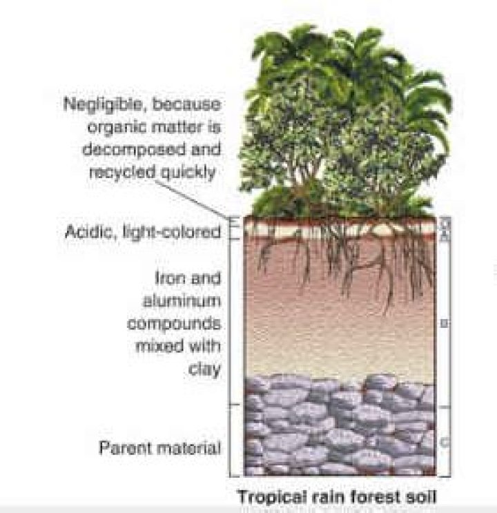 Soil – Many tropical rainforest soils are very poor and infertile. Millions of years of weathering have washed most of the nutrients out of the soil.