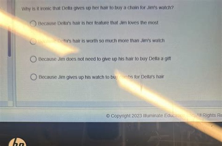 The other was Della’s hair. Della is still willing to sell her hair so she can buy Jim a really nice gift to show him how much she loves him. … Della sold her hair to buy him a fob for a watch he no longer has, and he sold his watch to buy combs for hair she no longer has.