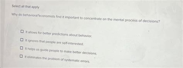 Why do behavioral economists find it important to concentrate on the mental process of decisions? It allows for better predictions about behavior. It helps us guide people to make better decisions.