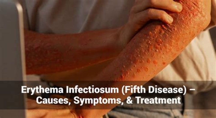 Erythema infectiosum is caused by a virus. Symptoms include a mild fever, slapped-cheek red rash on the face, and a lacy rash on the arms, legs, and trunk. The diagnosis is based on the characteristic rash. Treatment is aimed at relieving symptoms.
