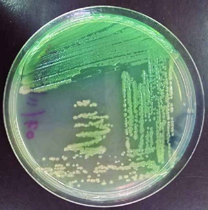 What bacteria grows green on Macconkey Agar?