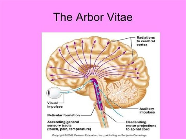The arbor vitae /ˌɑːrbɔːr ˈvaɪtiː/ (Latin for “tree of life”) is the cerebellar white matter, so called for its branched, tree-like appearance. In some ways it more resembles a fern and is present in both cerebellar hemispheres. It brings sensory and motor information to and from the cerebellum.