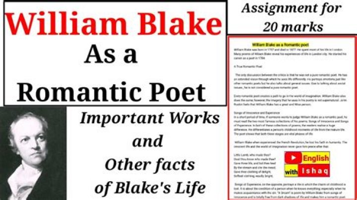 William Blake was a poet and a painter who was born in Soho in London in 1757. He is an important figure of the Romantic age. … As well as painting Blake also made books of his poems which he illustrated. One of his most famous works is a book called Songs of Innocence and Experience.