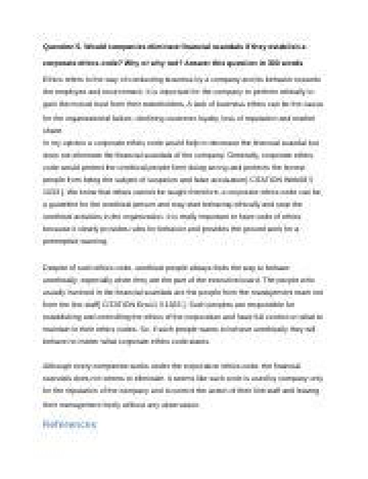 Would companies eliminate financial scandals if they establish a corporate ethics code Why or why not